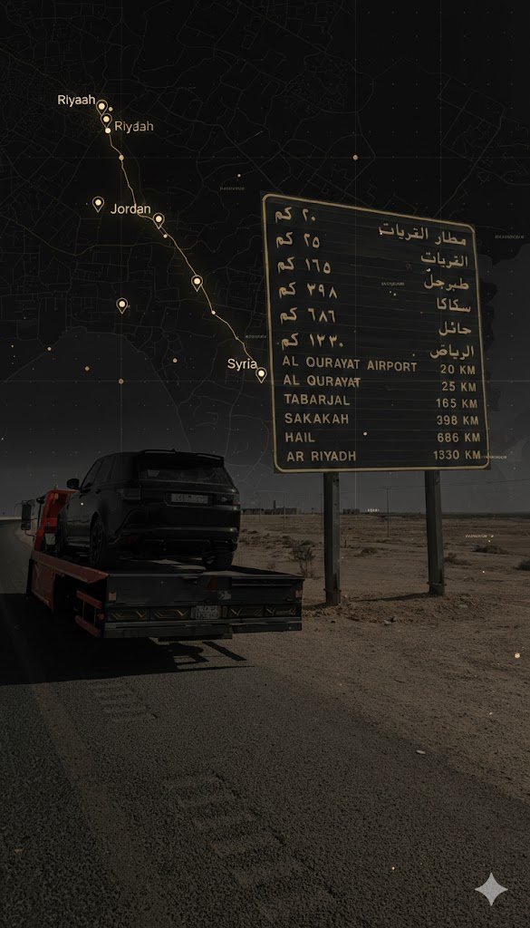 سطحة أبو مشعل تقدم لك خدمة احترافية في نقل السيارات من الرياض إلى طريف وعرعر، وكذلك النقل الدولي إلى الأردن وسوريا، مع التزام كامل بالمواعيد وأعلى معايير الأمان.